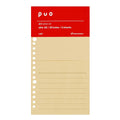 Made of environmentally friendly bamboo paper, these sheets feature half pockets for storing memos in your Puo binder. The half pockets are the perfect size for postcards or A4 size sheets folded in thirds. Use the pockets to store important notes or keep track of necessary tickets and cards when you travel. Each sheet features one pocket on each side, providing plenty of room for important documents